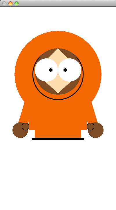 For our first class assignment, we were to draw a celebrity or well known character using only the basic draw function of openFrameworks. Then using mouse and keyboard functions, make the character reveal itself to the user over time. I drew Kenny, a famous character from the tv show South Park.