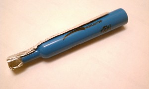 escribo© is an extension to make any pen or art tool compatible with a tablet device. Below are pictures of the first prototype, attached to a highlighter and pen.