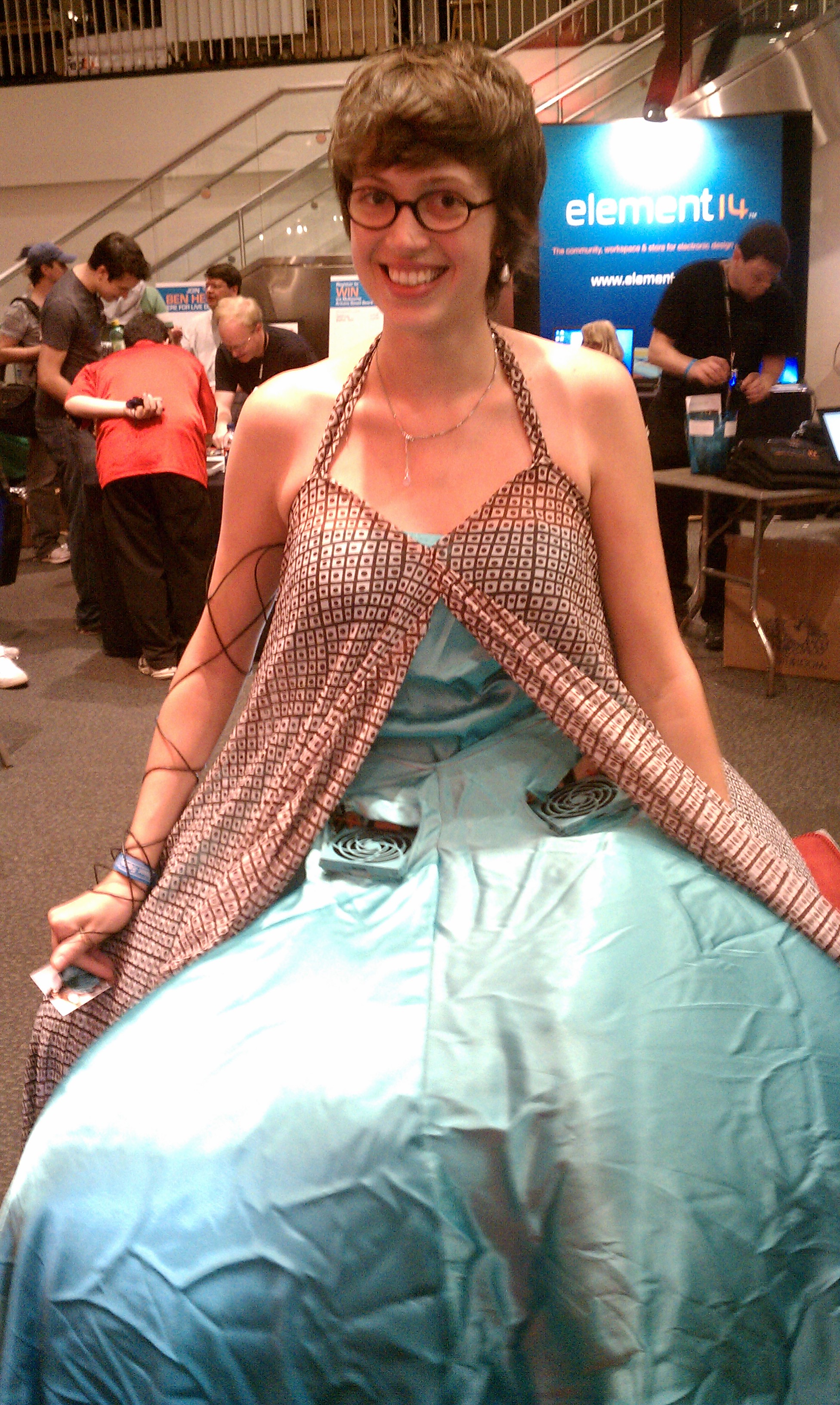 Next, I visited the Maker Pavillion. Some projects of note include POWERleap, which collects energy from foot traffic using special flooring (very similar to Chen’s shoe-embedded power collecting idea!); Mini SAD-robot by Dustyn Roberts, which uses solar power to draw; how-tos provided by instructables.com; Rachel’s Electronics, a local electronics store run by my Physical Computing teacher, Joel Murphy; Fixers Collective; and 4MP, “a collaborative interactive music system,” created by Michael Chladil, a graduate of NYU’s ITP;