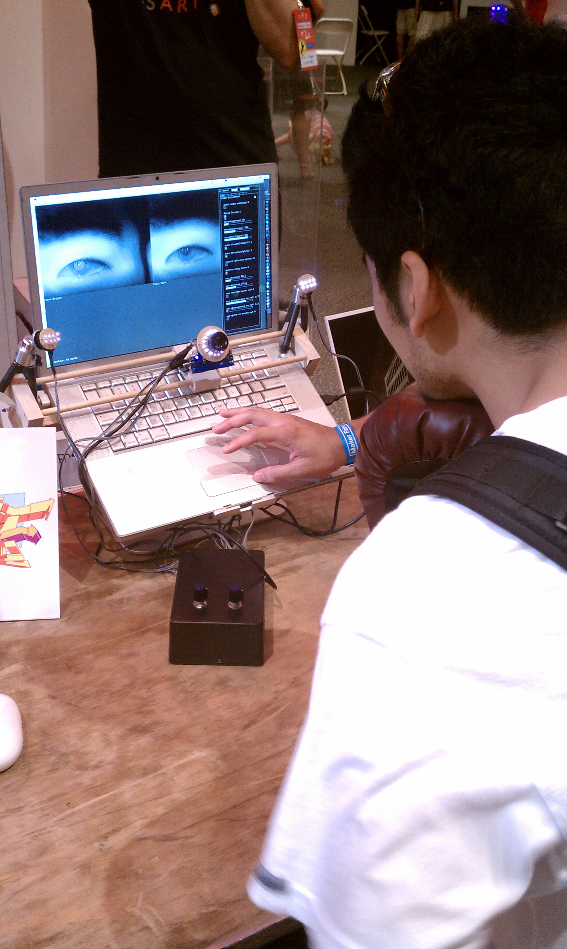 The EyeWriter is a collaborative project started to create eye-tracking, graffiti-drawing software for artist TEMPTONE. Diagnosed with ALS in 2003, Tempt1 is completely paralyzed except for his eyes. This opensource and low cost eye-tracking software will allow Tempt1 to express his art through his eyes, and will probably be expanded to be used in a lot of software in the future. I had the chance to demo the latest version of the software. While I was not able to keep still enough to allow the software to calibrate properly to my gaze, I was amazed by the accuracy and ease-of-use that others experienced during the demo. I will continue to excitedly follow the progress of this revolutionary project.